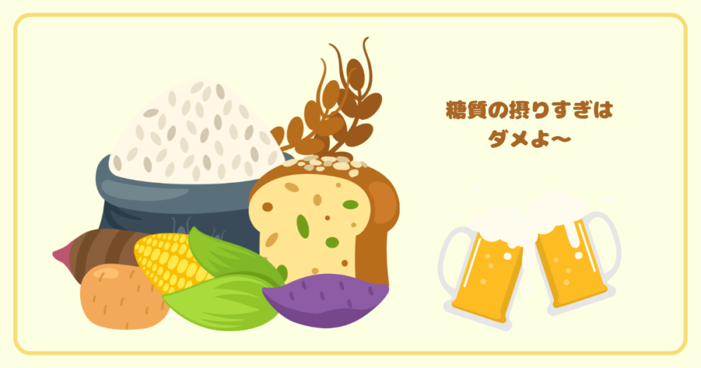 お酒をたくさん飲むことで、糖質も増えて