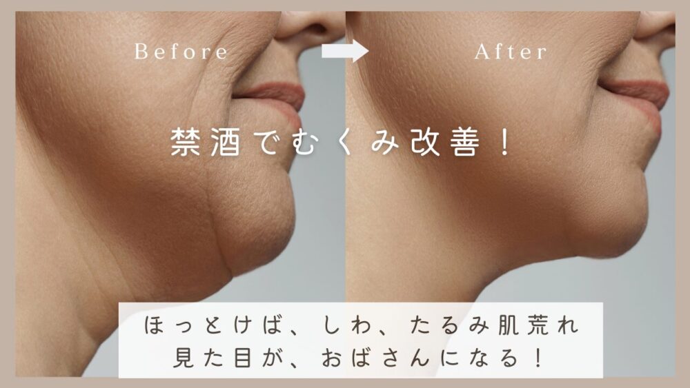 禁酒でむくみが、消えるだけでも顔はしまってる!