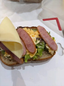 全粒粉パンに卵、チーズ、などを挟みたんぱく質を